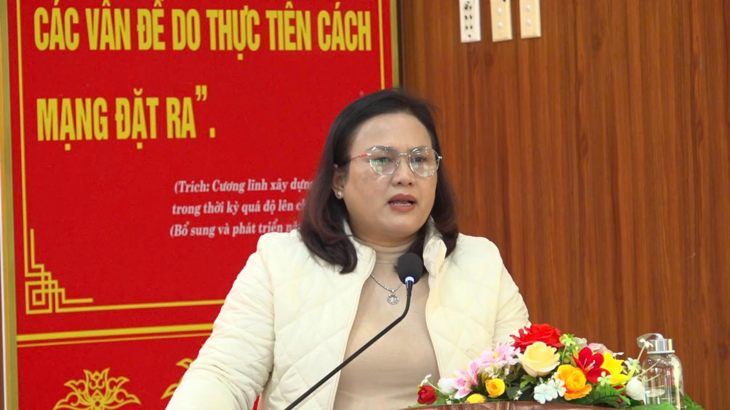 Ảnh: Bà Nguyễn Thị Tuyết Thanh, Thành ủy viên, Bí thư Đảng ủy xã Thăng Điền đại nhân sự ứng cử phát biểu tại hội nghị