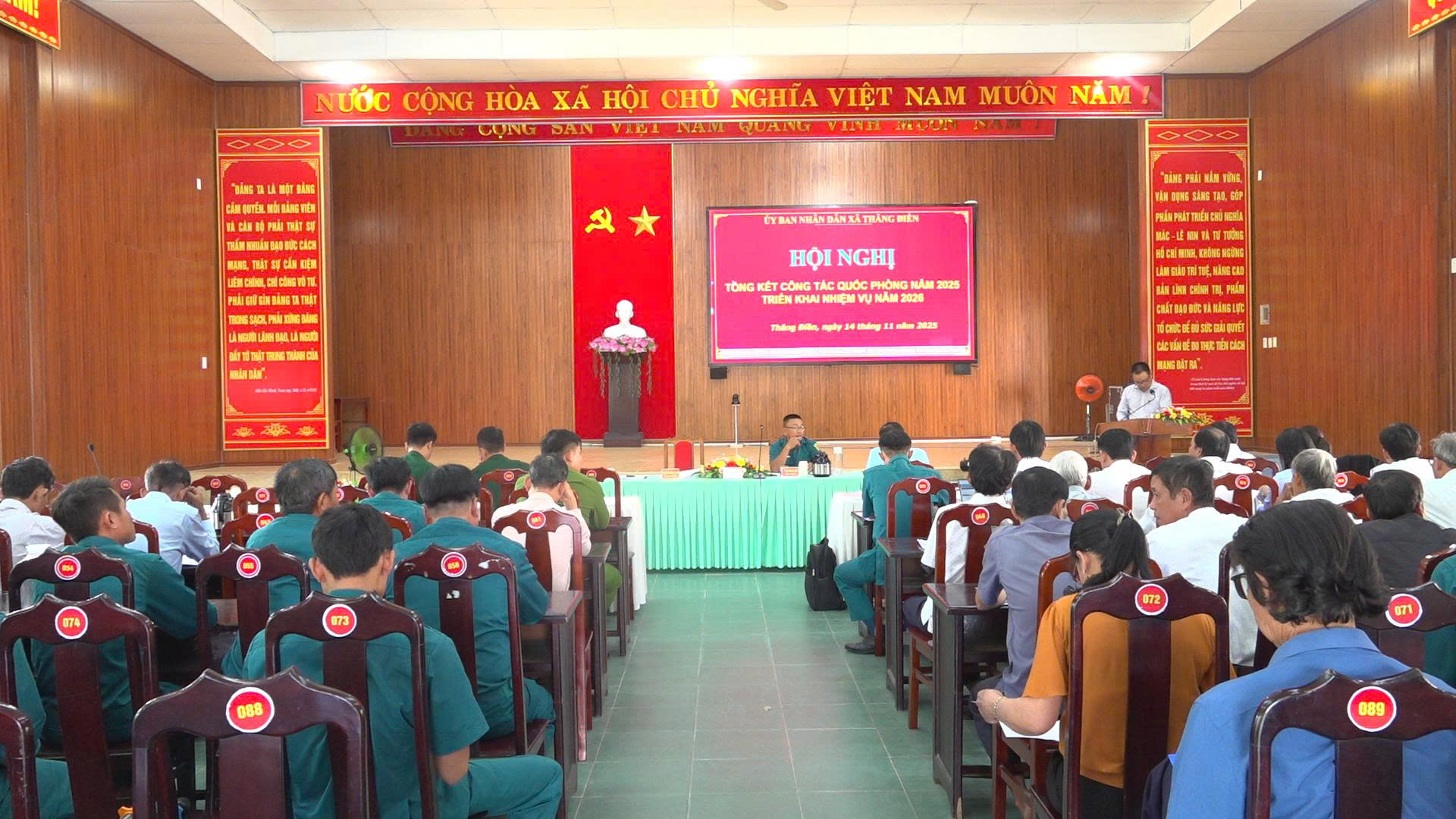 Tại hội nghị đề ra Nghị quyết lãnh đạo nhiệm vụ Quốc phòng - Quân sự địa phương năm 2026. Xã Thăng Điền phấn đấu giao quân đạt 100%. Tuyển chọn đảng viên và tạo nguồn phát triển đảng trong thanh niên nhập ngũ, phát triển đảng viên trong quân nhân dự bị hạng 1 đạt 100% chỉ tiêu. 100% cán bộ dân quân tham gia tốt việc tập huấn cấp trên; đồng thời thực hiện tốt công tác dân vận, xây dựng NTM ở các thôn.
