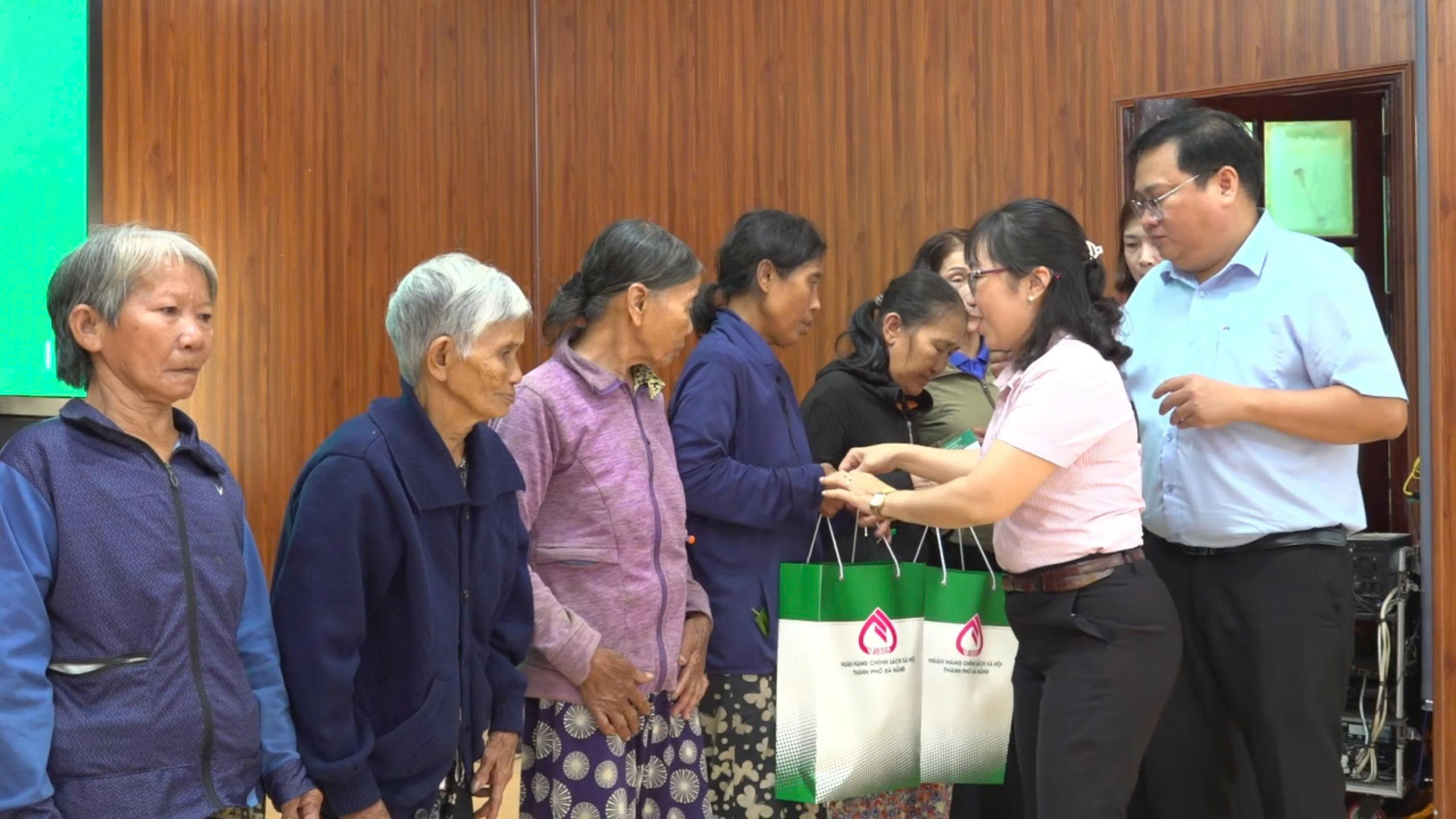 Ảnh: Đại diện NHCS Thành phố trao quà cho các hộ dân có hoàn cảnh khó khăn