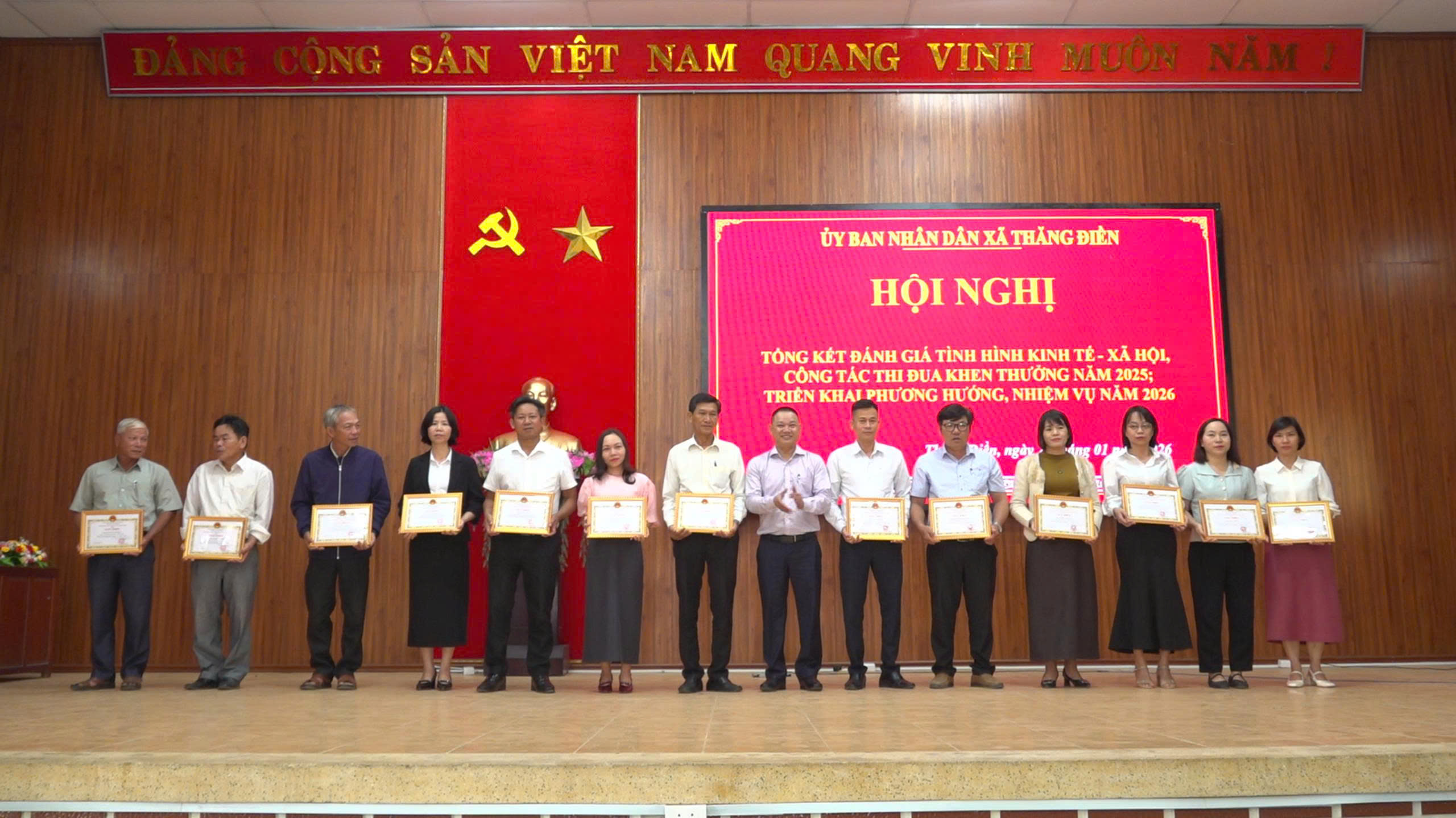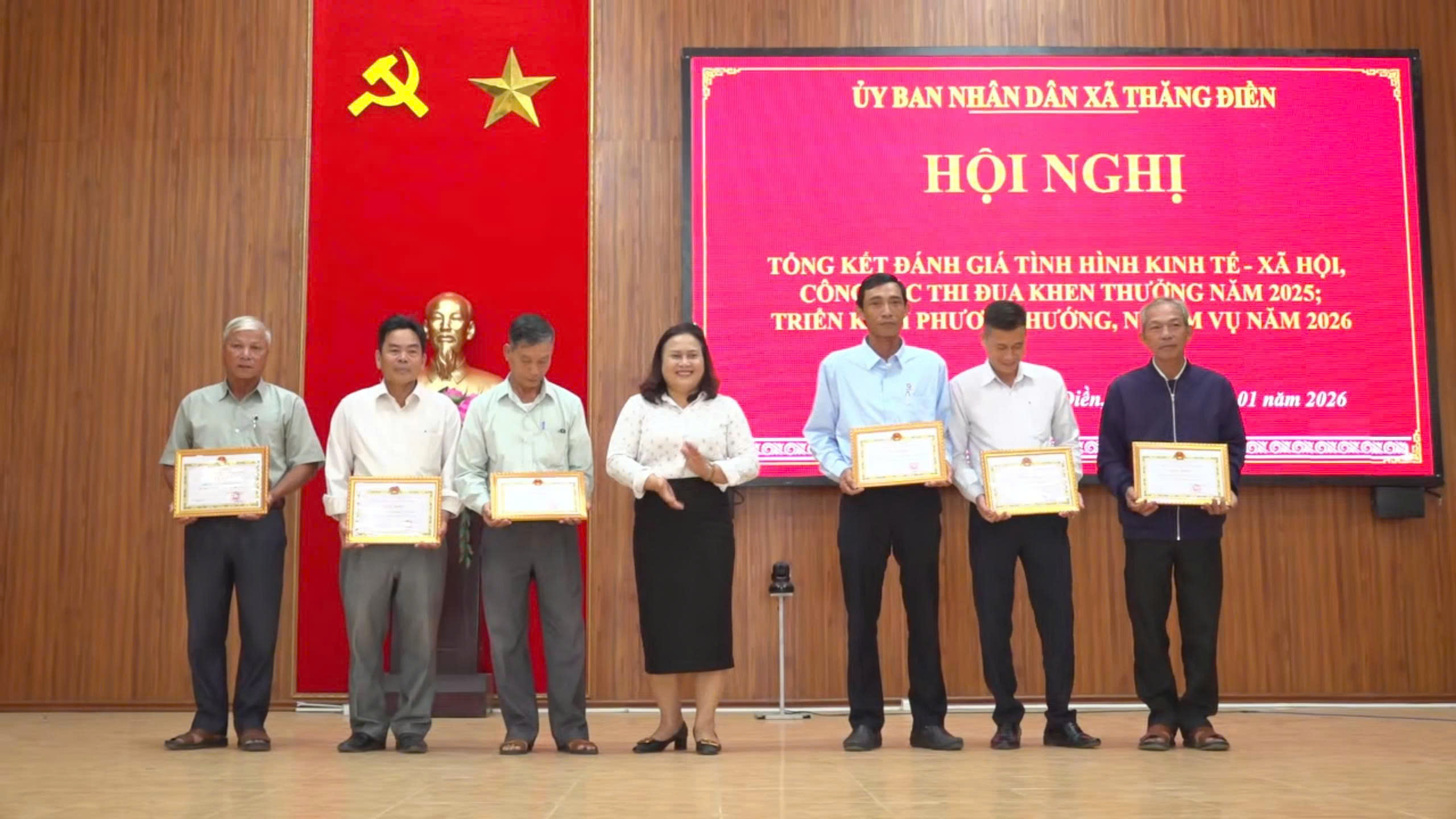 Dịp này UBND xã tặng danh hiệu “Chiến sĩ thi đua cơ sở” cho 19 cá nhân; tặng ggiấy khen của Chủ tịch UBND xã Thăng Điền cho 2 tập thể và 14 cá nhân đã có thành tích hoàn thành tốt nhiệm vụ trở lên năm 2025; đồng thời khen thưởng cho các tập thể, cá nhân có thành tích xuất sắc trong các chiến dịch, đợt thi đua cao điểm.