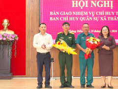 Sáng 19/1, dưới sự chứng kiến của Bí thư Đảng ủy xã Nguyễn Thị Tuyết Thanh và Chủ tịch UBND xã Trương Công Sơn đã diễn ra lễ bàn giao nhiệm vụ Chỉ huy trưởng Ban Chỉ huy Quân sự xã Thăng Điền do Ban CHQS xã tổ chức.